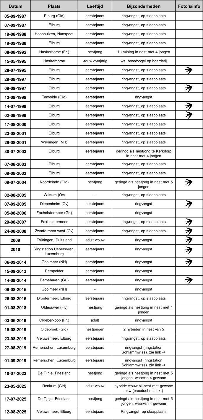 * Smit A. 1989. Vangst van een kruising Boerenzwaluw X Huiszwaluw. Op het Vinketouw 54: 23-25.